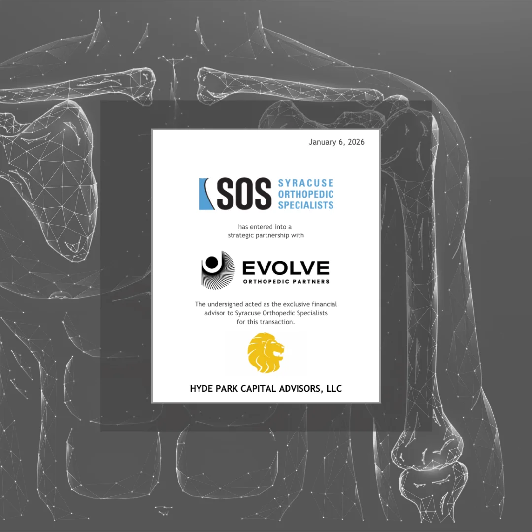 Tampa, FL. – January 23, 2026 – Hyde Park Capital announced that its clients—Syracuse Orthopedic Specialists (SOS), Specialists’ One-Day Surgery (SODS), New York Spine & Wellness Center (NYS&WC), and Heritage One Day Surgery (HODS)—collectively recognized as leading providers of musculoskeletal services in Central New York, have entered into a partnership with Evolve Orthopedic Partners (Evolve). Hyde Park Capital served as the exclusive investment banker to SOS, SODS, HODS, & NYS&WC for this transaction. Arnold & Porter served as legal counsel to SOS, SODS, HODS, & NYS&WC.